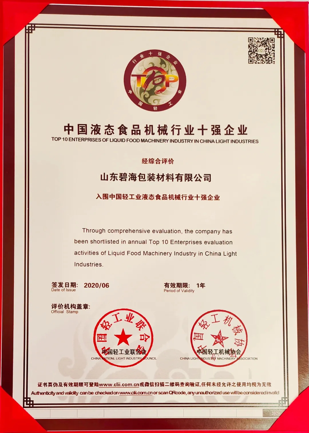 會上宣讀了中國輕工業(yè)裝備制造五十強(qiáng)企業(yè)、中國液態(tài)食品機(jī)械行業(yè)十強(qiáng)企業(yè)名單,碧海包裝均位列其中。本次評選是貫徹黨中央國務(wù)院關(guān)于加強(qiáng)科技創(chuàng)新、培育具有全球競爭力一流企業(yè)、建設(shè)制造強(qiáng)國系列戰(zhàn)略部署的具體舉措,是中國輕工業(yè)聯(lián)合會、中國輕工機(jī)械協(xié)會以及社會各界對碧海包裝綜合能力和行業(yè)影響力的肯定和認(rèn)可。