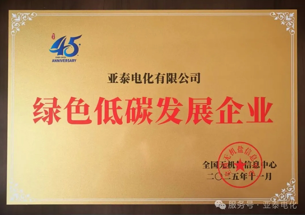 在化工行業(yè)向綠色可持續(xù)轉型的浪潮中,國家高新技術企業(yè)——亞泰電化有限公司始終堅守創(chuàng)新驅動、低碳發(fā)展的初心,近日再傳捷報:公司在2025年11月7日至9日第45屆無機酸堿鹽學術年會上被授予“綠色低碳發(fā)展企業(yè)”。